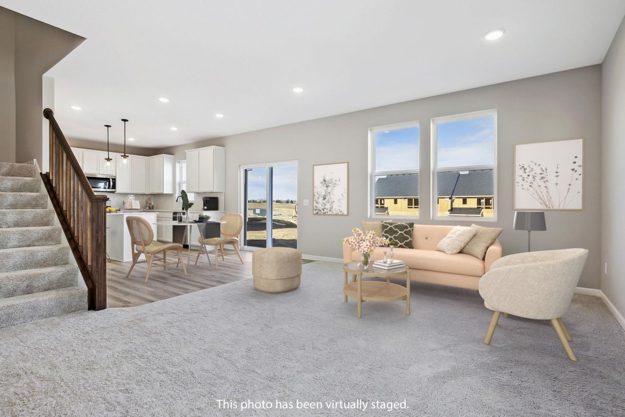 This home is under construction and is trending a May 2026 closing timeframe. Take advantage of the last available 3-bedroom Macalester two story. A perfect fit for first time buyers looking for modern style, smart design, and room to grow. The open concept main floor connects the family room, dining area, and kitchen, creating a bright and welcoming space for everyday living. 9-foot ceilings and abundant windows make the home feel spacious and comfortable. This layout is thoughtfully designed to maximize the space you use every day, giving you practical living areas without paying for unnecessary square footage. It's the ideal mix of comfort, efficiency, and affordability. A kitchen built for real life?complete with stainless steel appliances, a pantry, and a large quartz island for cooking, gathering, or working from home. Upstairs offers everything a growing household needs: three bedrooms, two bathrooms, and a flexible loft perfect for TV time, a study area, or play space. The private owner's suite includes a walk in closet and double bowl vanity. Located in Anoka Hennepin School District 11, this home is close to parks, trails, playgrounds, and Blaine's many recreational options. The nearby National Sports Center offers year-round activities, and everyday conveniences like shopping and dining are just minutes away. Easy access to major roadways makes commuting simple. If you're looking for a fresh start in a community with plenty to offer, this home delivers modern comfort, smart design, and an approachable price point?perfect for first time homeowners.Photos are of a model home.