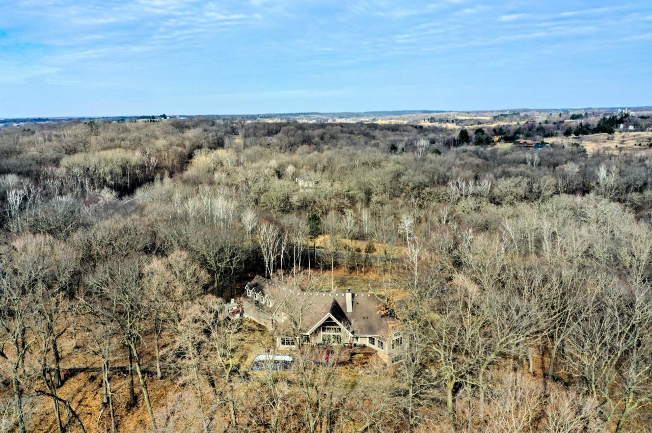Welcome to 19155 263rd St, an exceptional custom-built home situated on 2.5 private acres along the St. Croix River in the prestigious St. Croix Bluffs neighborhood. This unique estate features a stunning floor-to-ceiling stone fireplace and impressive towering ceilings, along with cherrywood custom cabinets and tigerwood hardwood floors. The main level includes a spacious primary suite with an arched hallway entry and beautiful windows that flood the space with natural light. Upstairs, you will find two bedrooms?one with an en-suite bath?as well as a generous bonus room, ideal for a children's play area, a flexible room, a movie room, or a creative space. The large open basement features a family room with a wood-burning fireplace and wet bar, a bathroom with a walk-in steam shower, and additional unfinished flex space currently used as a hobby shop. The home is equipped with in-floor heating throughout. The heated four-car garage even includes an elevator for easy transport of your belongings into the house! Outside, you'll find ample deck and patio space, perfect for entertaining or simply enjoying the tranquility of the private wooded surroundings.