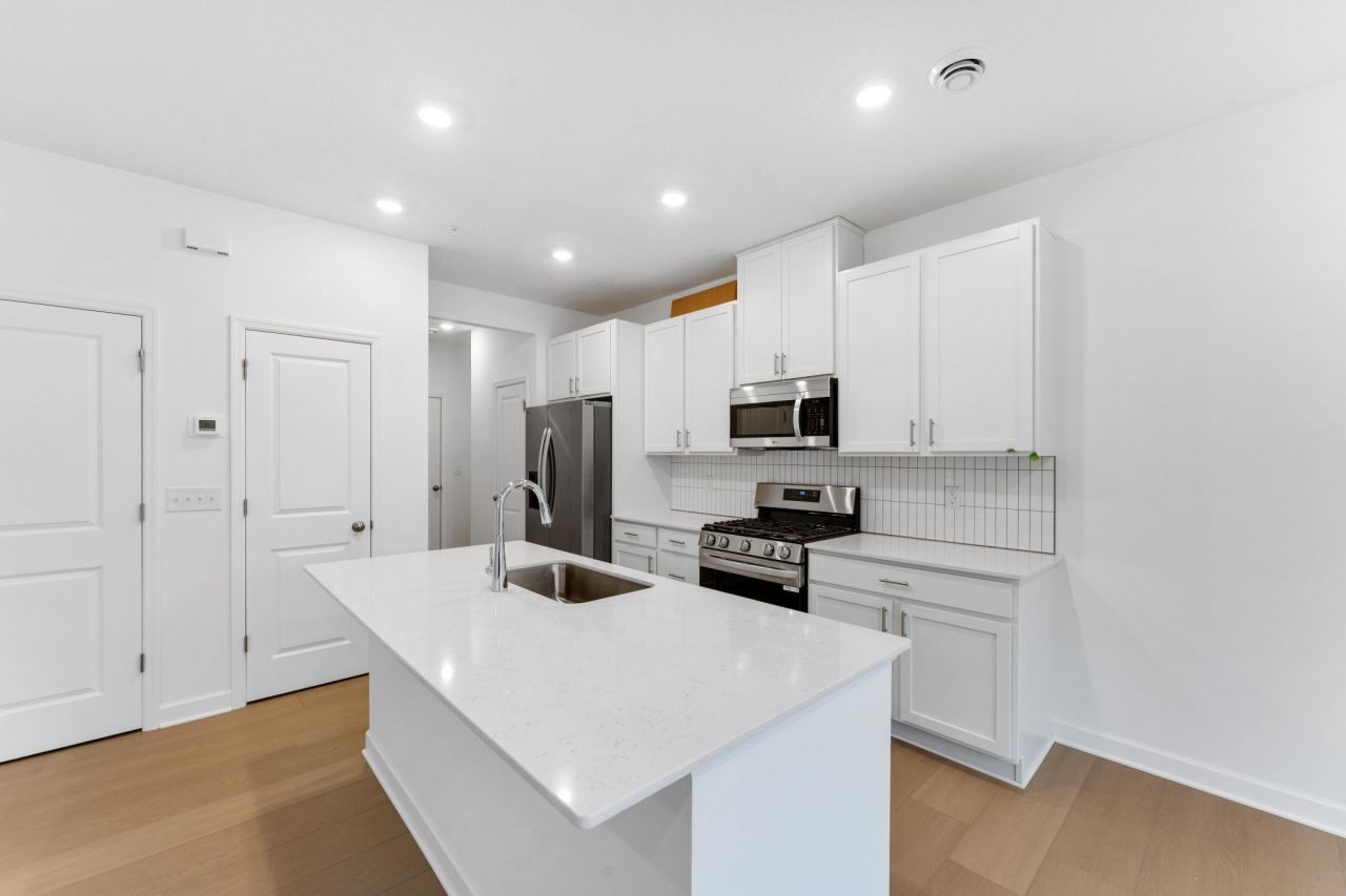 Move-in ready! Step inside this inviting 1,719 square foot two-story townhome and discover a thoughtfully designed layout perfect for both relaxing and entertaining. The main level welcomes you with a spacious family room, a dedicated dining area for memorable gatherings and a modern kitchen featuring LG® stainless steel appliances, quartz countertops, a tile backsplash and sleek cabinetry with soft-close doors. Enjoy the convenience of a stainless steel undermount sink and a Moen® high-arc pullout faucet, making meal prep and cleanup a breeze. Upstairs, three restful bedrooms await, including a generous owner's suite with a glass-enclosed shower, oversized shower head and Silestone® countertops. Throughout the home, you'll find plush carpeting in the bedrooms, luxury vinyl plank flooring in the living areas and professionally designed interior color packages. Energy-efficient features like Low-E dual pane windows, R-49 attic insulation and a 92% efficient furnace help keep comfort in and costs down. The fully drywalled attached 2-car garage with an insulated door, opener and exterior GFCI outlets adds even more convenience. Homes with this level of style and functionality are in high demand?don't miss your chance to make it yours!