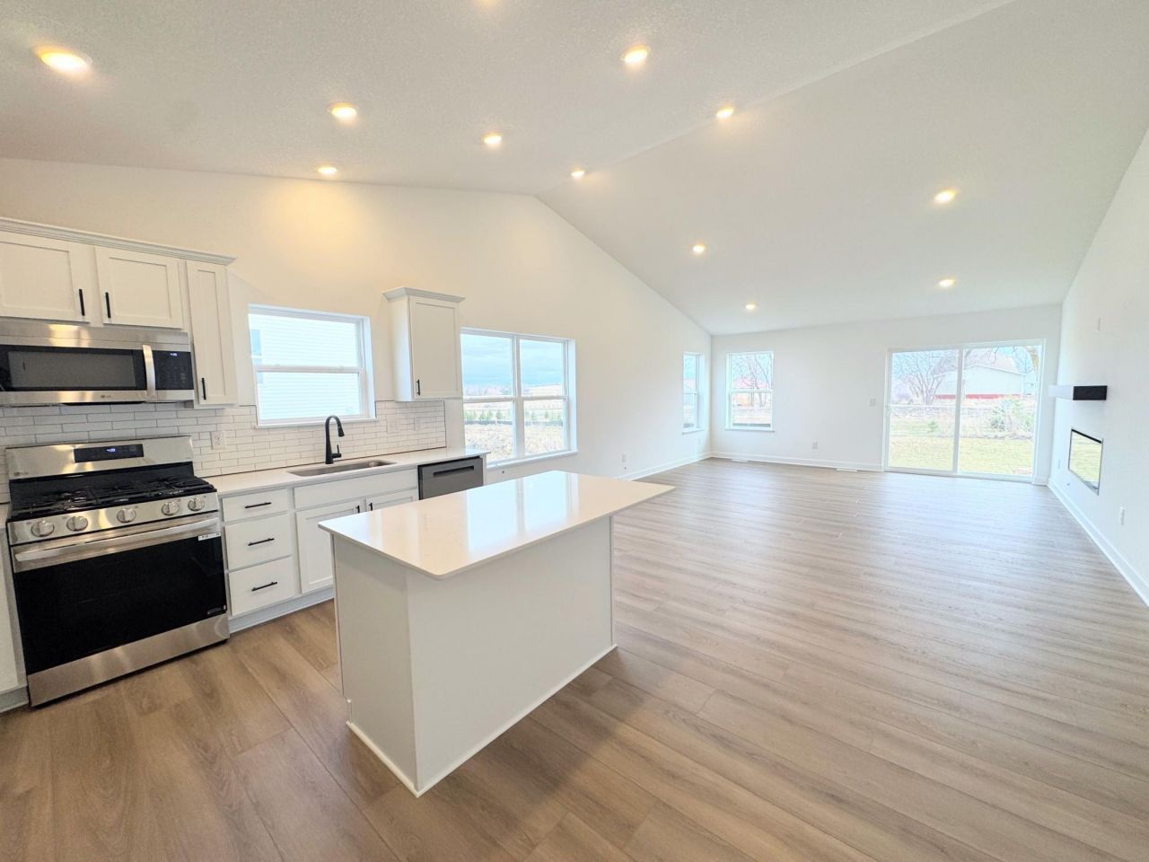 Move-in ready! Experience the perfect blend of style, comfort and flexibility with the Courtland 2, a beautifully designed home offering 2,328 square feet of thoughtfully crafted living space and a generous 3-car garage. A welcoming front porch leads inside to a vaulted main level filled with natural light. The open-concept design seamlessly connects a cozy living room featuring a modern fireplace, a bright dining area, and a contemporary kitchen equipped with stunning quartz countertops, stainless steel appliances, a central island and a convenient pantry. A versatile flex room offers plenty of possibilities?think home office, creative space or play zone. Upstairs, discover three spacious bedrooms, including the private owner's suite with its own bath and walk-in closet. Downstairs, the finished basement opens up even more living space with a fourth bedroom, another full bathroom, an additional living room, laundry room, and direct walkout access to the backyard with peaceful views. With a future community park planned just beyond the homes and pond across the street, opportunities for fun and relaxation await right at your doorstep. This move-in-ready home is designed with the modern buyer in mind, and it's expected to draw plenty of interest?don't miss your chance!