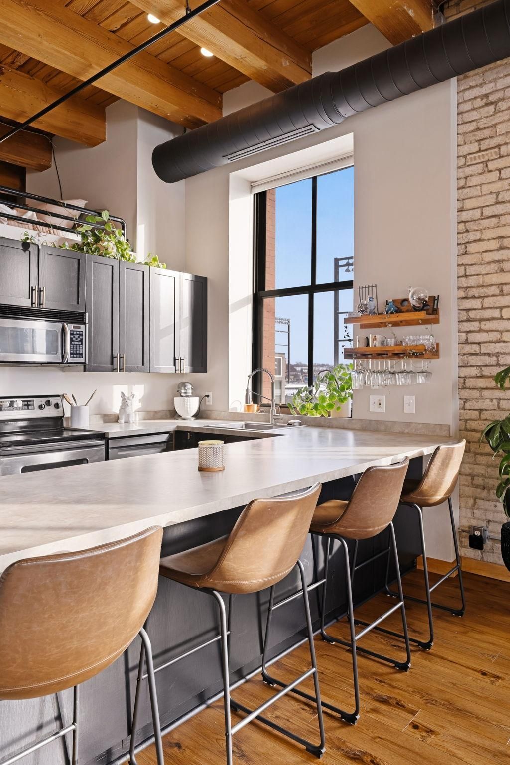 If you've been waiting for a true Lowertown loft moment, this is it. This iconic loft in Market House offers 14-foot ceilings, exposed brick, and original wood beams, paired with oversized windows that flood the space with natural light. Located in one of the most desirable stacks, this corner unit features abundant windows (8 total) with views overlooking CHS Field. Catch Saints games from home or walk across the street to the St. Paul Farmer's Market, with restaurants, breweries, and coffee shops just steps away.Originally built in 1902 as a fur factory, the building blends historic charm with modern updates, including a newly completed HVAC system allowing year-round temperature control. Enjoy in-unit laundry, a custom kitchen pantry, a spacious bath with double vanity and soaking tub, plus generous storage tucked beneath the loft.Amenities include a secure mail room, elevators, rooftop deck, and two-story party room with spiral staircase. Don't worry, plenty of nearby parking options available!