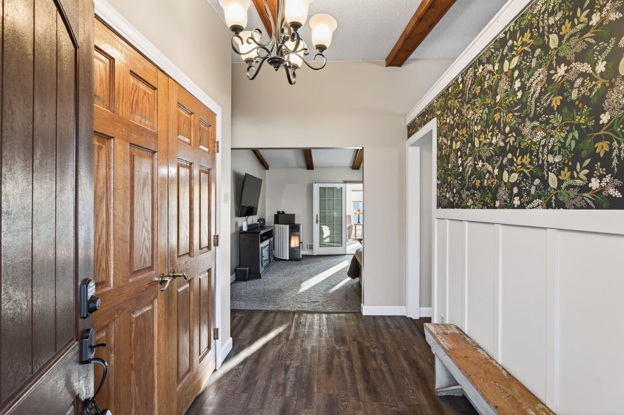 Set on an incredible 34.64 acres in Princeton, this one-of-a-kind property offers a rare opportunity to own expansive, versatile land with endless potential for development, recreation, or a private retreat. With the ability to divide into 2.5-acre parcels, the possibilities here are wide open?whether you're looking to invest, build, or simply enjoy the space and privacy. The land itself is exceptional, featuring a beautiful mix of woods, open pasture, ponds, high ground and grazing areas. Outdoor amenities abound, including a fenced garden, thriving orchard with apples, plums, grapes, and raspberries, a well-designed chicken coop, and a pasture with electric fencing and shade house. Multiple outdoor living spaces make it easy to enjoy every inch of the property, plus it is maintained by a Hunter 21-zone irrigation system. You'll find a 24x20 paver patio with fire pit surrounded by lilac trees, a 10x12 concrete picnic patio, a 12x12 6-person hot tub patio with pergola and winter curtain, plus a cedar deck with iron railings. The impressive 40x72x16 stick-built pole shed is an amazing feature, offering a 40x40 heated and insulated workshop, 32x40 cold storage space, 200 amp service, commercial-grade garage doors with openers, loft that can be used as an office or fun space (kitchen, living room, flex room and 1/2 bathroom), plus a 16x40 lean-to with concrete and dog kennels. This is a dream come true for hobbyists, business use, or future flexibility. The home itself has been fully renovated, blending quality, stylish updates with warm, inviting character. Inside, you'll find hand-scraped hardwood floors, solid 6-panel doors, and a large welcoming foyer with board and batten detail and modern wallpaper accent. There are 4 bedrooms (3 on the upper level), a spacious primary bedroom with walk-in closet and walk-through access to a beautifully updated bath with heated tile floors, a tiled shower/deep tub combo. The kitchen features custom painted, soft-close maple cabinets by Crystal Cabinets, granite countertops, butcher block island with breakfast bar, tile backsplash, and SS appliances including cooktop and wall oven, along with an eat-in dining area. The adjacent dining room showcases a fantastic built-in pantry with sliding barn doors. A newly added sunroom is where you will want to spend all your time, with floor-to-ceiling windows and a stone surround gas fireplace. The large living room features vaulted ceilings with wood beams and a corn pellet stove for supplemental heat. The finished lower level offers excellent flexibility with a family room, kitchenette, bedroom, bathroom, and direct access to the garage which is perfect for guests or a multi-generational living setup. The lower level bath has also been remodeled to include a large jetted soaking tub, separate tile shower and double vanity. A heated, insulated and finished 3-car garage with epoxy floors and room for storage, water softener, iron filtration system, newer windows,