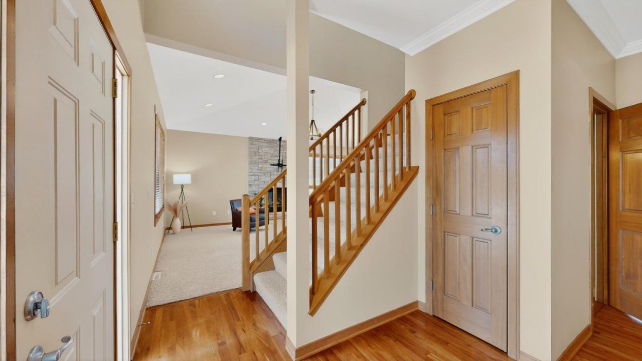 Exceptional 2-story home in desirable Scenic Oaks SW with private backyard, wooded and pond views. This 4 bedroom, 4 bath home features soaring ceilings, crown molding, cherry hardwood floors, and 2 gas fireplaces. Spacious kitchen with granite countertops, cherry cabinetry, pantry, and snack bar. Great floor plan with formal and informal dining areas, main floor laundry, and multiple gathering areas. Upstairs you will find 3 bedrooms, which includes the primary suite with tray ceiling, walk-in closet, and private bath. Fully finished lower level features a family room with additional wet bar and game room. The 4th bedroom and bath creates a perfect guest suite. Enjoy the oversized 2-tier deck overlooking the large yard and pond. Large 3 car, heated and insulated garage, gives plenty of room for parking and storage. Minutes from golf, shopping, parks, trails, and restaurants.