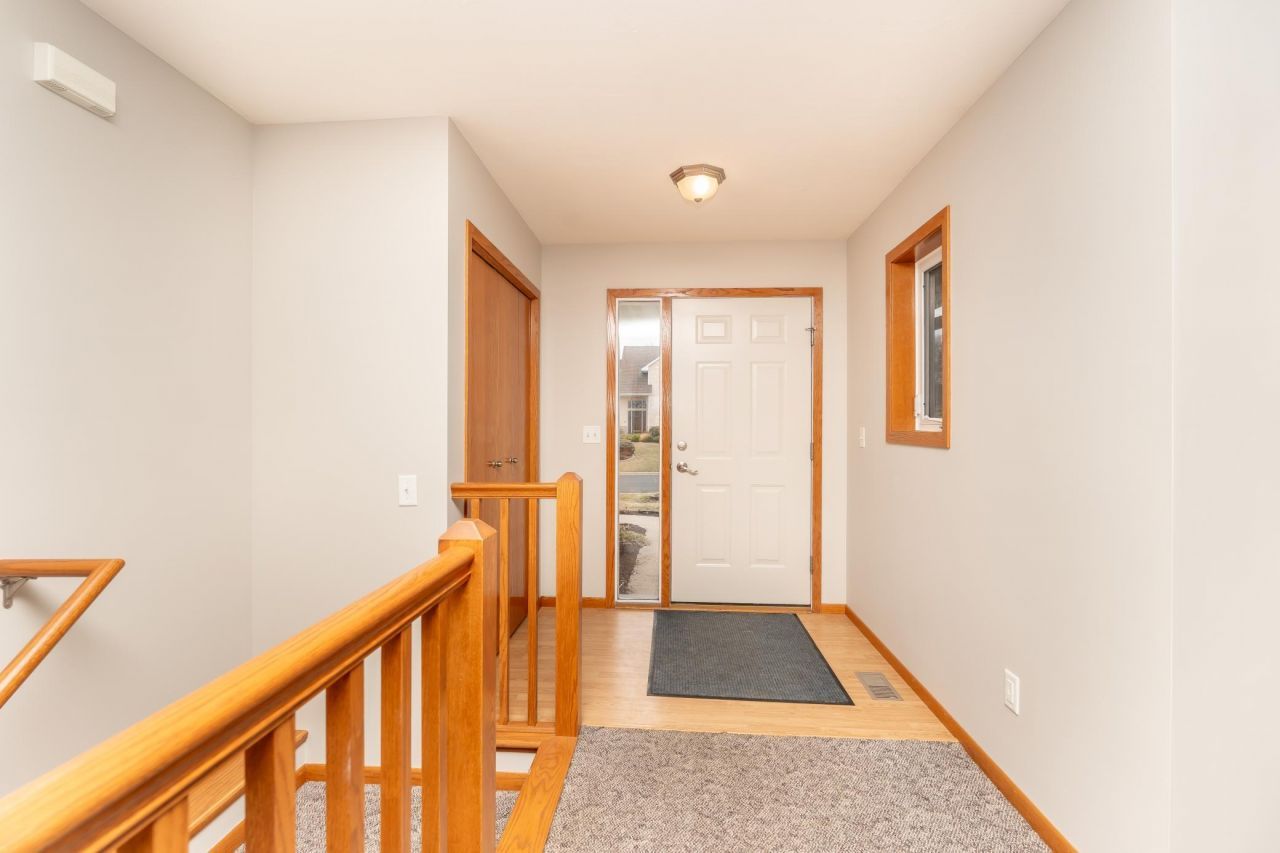 Custom built 4 bedroom 2 bath walkout rambler in a great neighborhood close to stores and parks. Large open living areas. Gas fireplace in the living room. Functional kitchen is the heart of the home with lots of cabinets & counters, stainless steel appliances, double oven and a huge center island as the gathering spot! Dining area that can fit everyone for holidays. Walkout lower level serves as a great hangout in the large square family room with space for any game table! Lots of storage space too. Interior was just painted giving it a fresh neutral feel. New roof and gutters in 2024. Maintenance free deck overlooks yard with mature trees and a lawn irrigation system. Huge garage with a convenient wash tub. 3rd stall area is a separate heated & insulated workshop space. Must see!