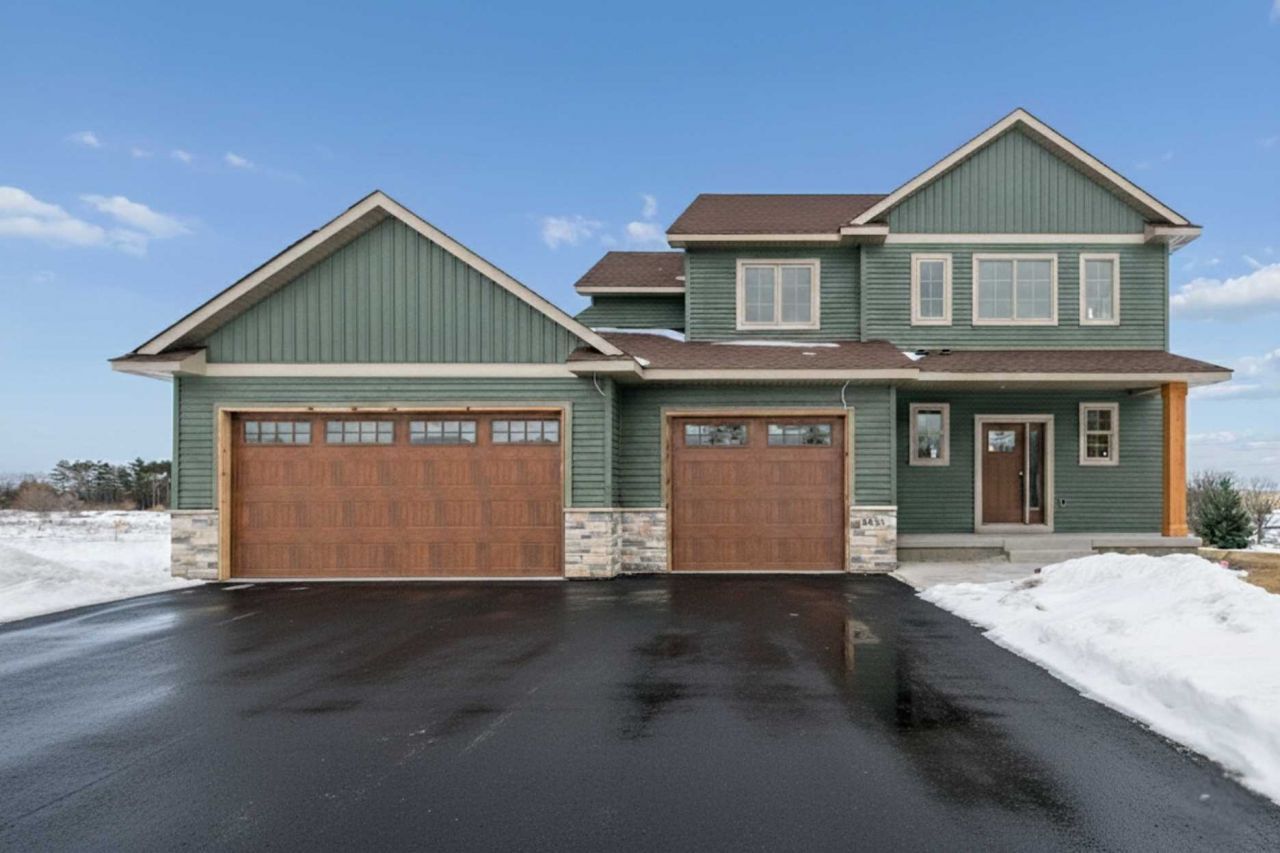 Introducing 5433 389th Trail, North Branch, Minnesota. This new model home is nestled upon 2+ acres with a fantastic level lot, tree-lined backyard, beautiful nature and views, quiet entrance, low-traffic, and a thoughtfully placed / spaced out community. The Josephine floor-plan offers a long-term loved spacious layout of 3 bedrooms, 3 bathrooms, with full luxury amenities that make everyday living so comfortable. Upon entering the foyer this home offers vaulted 2 story ceilings with grande windows and fantastic natural light, a built-in bench seat for guests, closet, and guest bathroom. The vaulted ceilings and natural light are fantastic. Past the foyer you're greeted by open concept living and cooking spaces - a custom floor-to-ceiling stone fireplace with built-in recessed TV insert, beautiful built-in cabinets for storage, and large picture windows that offer serene views of the private 2+ acre backyard. You'll love the attention to detail with millwork throughout - raised paneled ceilings, trim-work, and upgrades featured in this model home. The gourmet kitchen offers high-end finishes, quartz countertops, soft-close cabinets, plenty of space to entertain and cook. A full butler's pantry conveniently located off the kitchen makes prep and storage so easy and clean. Storage is a non-issue with the expansive mudroom off the garage, featuring more built-in cabinets and seating. Patio slider doors in the dining area lead to your future deck or 3 season porch, drawing your attention back out to the green space, nature, and wildlife views. The upper level offers 2 generous-sized bedrooms (all with walk-in closets), a full guest bathroom, full laundry room space with built-in cabinets and sink, and a primary bedroom suite that created to impress. The primary bedroom has vaulted tray ceilings, views of the backyard green space, and a full luxury primary bathroom and walk-in closet with great natural light. The details and selections in this bathroom make the space ultra relaxing and spa-like. Clients have loved the spacious walk-out basement design. The option to complete this unfinished lower level offers an additional 1,106 square feet to create an additional family room, recreational room, 4th bedroom, and bathroom. The lower level is roughed in for a 4th bathroom if needed. The basement offers fantastic storage and is open to customize however you'd like. Clients have also chosen to expand on this design and create additional bedrooms, bathrooms, sunrooms, saferooms, decks, and detached garages to make it truly their own. You'll love the large insulated 3 garage. Having a floor drain, and generous space to store additional toys makes the space practical and tidy.The Sunrise Bluff community is highly sought after due to its close proximity to easy commutes to the Twin Cities & St. Croix Falls, WI, but also, its beautiful rural country environment and landscape. Please see supplements for more information on the Sunrise Bluff com
