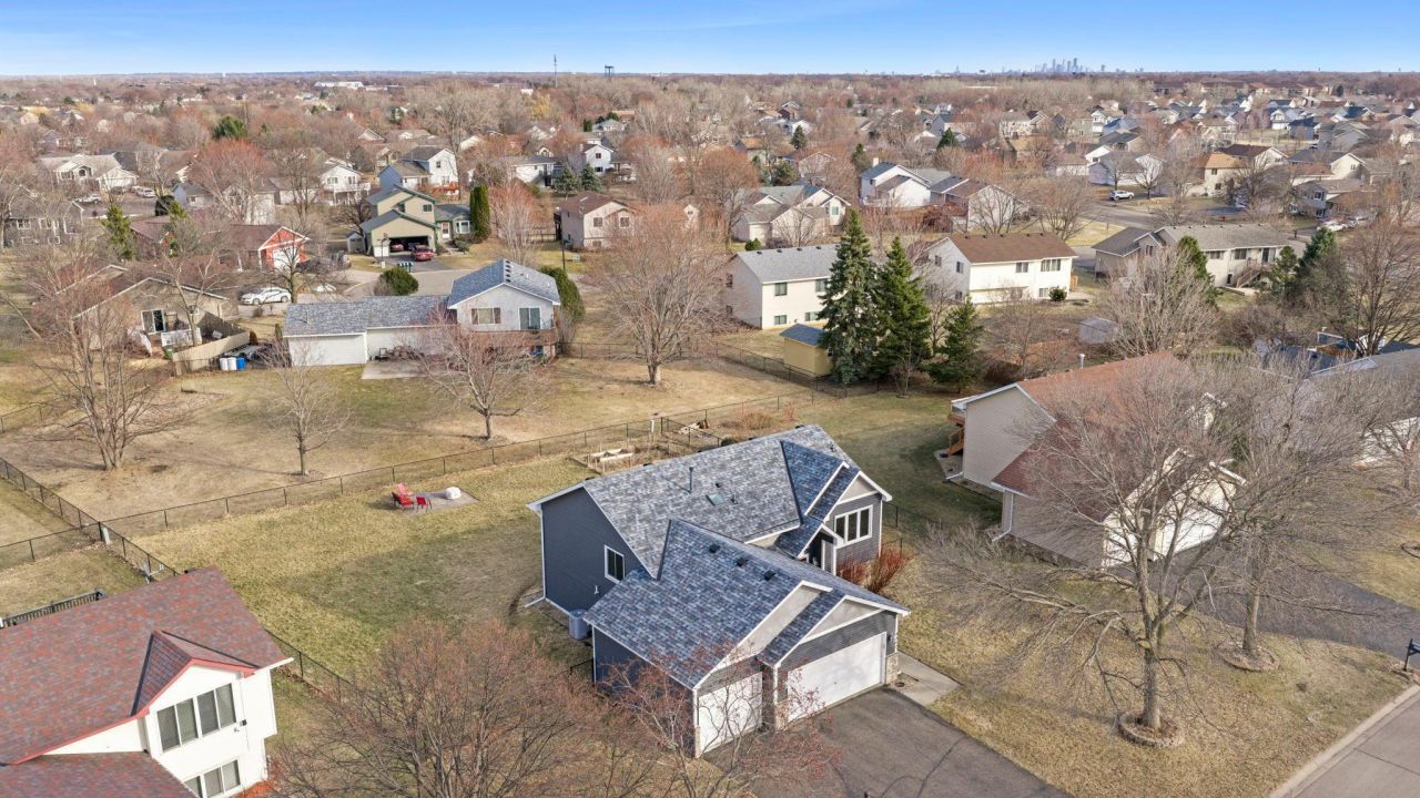 Step into this inviting 3-bedroom, 2-bathroom Brooklyn Park home, just minutes from Arbor Lakes shopping, Elm Creek Park Reserve, and Edinburgh Golf Course, with parks and amenities nearby. The open floor plan seamlessly connects upper and lower living spaces. The foyer boasts 11-foot vaulted ceilings, ample closet space, and convenient access to the attached three-car garage with workbench and shelving. Upstairs, the main living area flows effortlessly between the kitchen, dining room, and living room?perfect for entertaining. The kitchen features a dine-in area, multiple windows for natural light, and a view overlooking the foyer. The dining room highlights a rustic light fixture, bay window, and sliding door to the deck, overlooking a large, fully fenced backyard with paver patio, garden space, and in-ground irrigation. The vaulted living room offers a bright, relaxing space with backyard views. The primary suite includes a walk-in closet and walk-through bathroom with double vanity, full tub/shower with rainfall and handheld showerheads, and generous linen storage. The second bedroom also features a walk-in closet and backyard view. The lower level offers a versatile family room, full bath, third bedroom, laundry and utility access, and crawl space storage under the stairs. Lookout windows provide natural light, keeping the space bright and open. This home combines abundant light, open living spaces, generous storage, a large backyard, and a flexible lower level designed to suit your lifestyle. There is room for a 4th bedroom in the lower level.