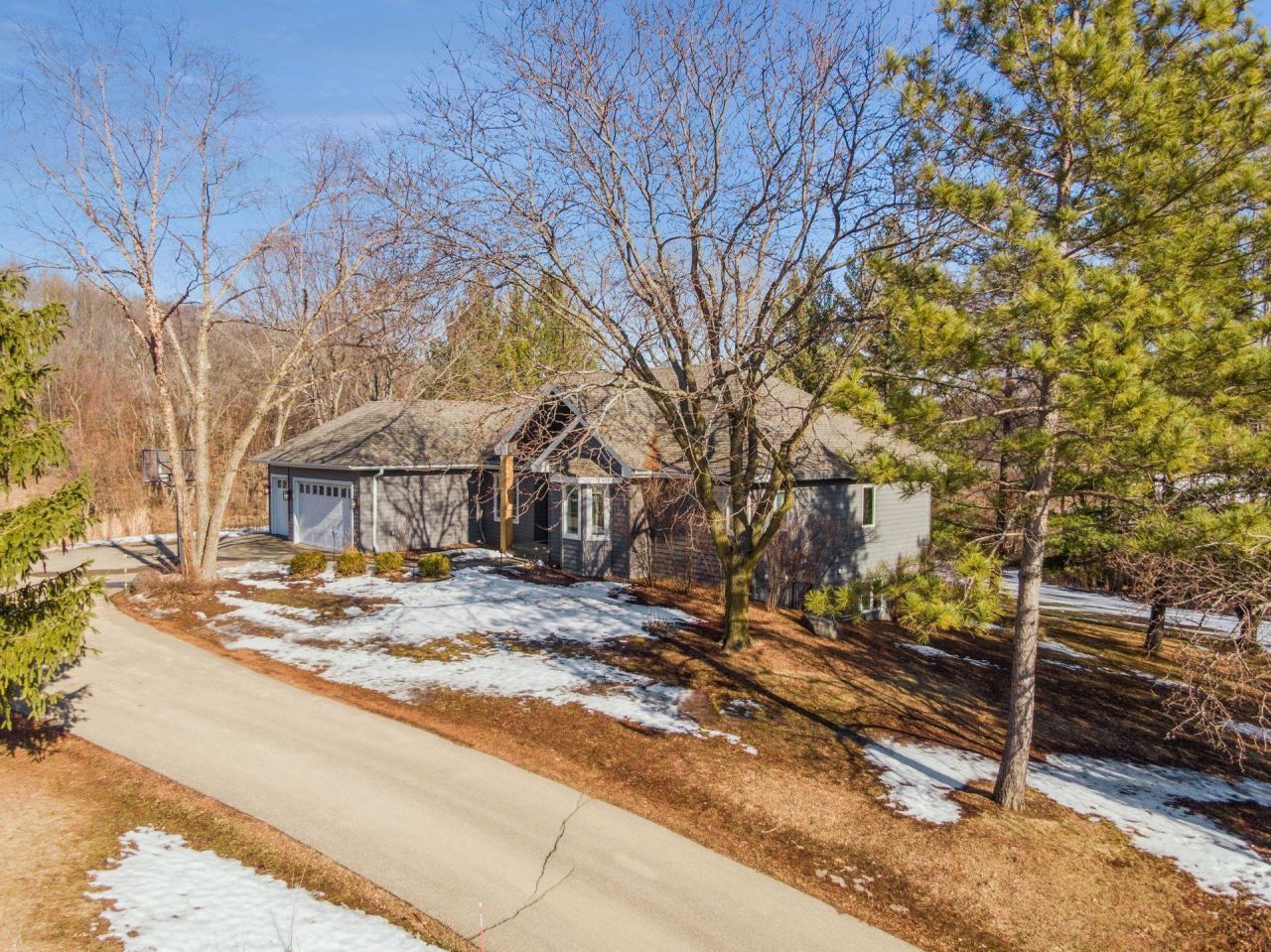 Completely updated and move-in ready, this private 2.5 acre property offers the perfect blend of modern finishes, open-concept living, and a peaceful, tree-lined setting.Step inside to vaulted ceilings, a wall of windows, and a bright, open layout designed for everyday living and entertaining. The fully remodeled main floor features a stunning kitchen with updated cabinetry, stainless steel appliances, and seamless flow to the dining area and deck overlooking the backyard.Extensive updates throughout include a new roof, windows, siding, HVAC system, and flooring. All bathrooms have been remodeled, and the home has been refreshed with new lighting, interior doors, trim, and paint throughout.The spacious primary suite includes an updated bathroom, while the finished walkout lower level provides additional living space, a fireplace, and flexibility for entertaining, work, or guests. A remodeled mudroom and laundry area add everyday convenience.Set among mature trees, this property offers a rare sense of space, privacy, and stillness that is hard to find.See feature and updates sheet for extensive upgrades list.